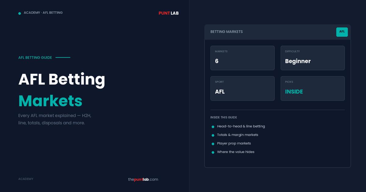 AFL betting is unique. No other sport produces scores in the 70-110 range with the same combination of volatility and structure. The scoring system — six points for a goal, one for a behind — creates markets that behave differently from every other sport. Totals lines sit around 160-170 combined points. Line margins are measured in dozens. And the physical, contested nature of the game means momentum swings can be dramatic.