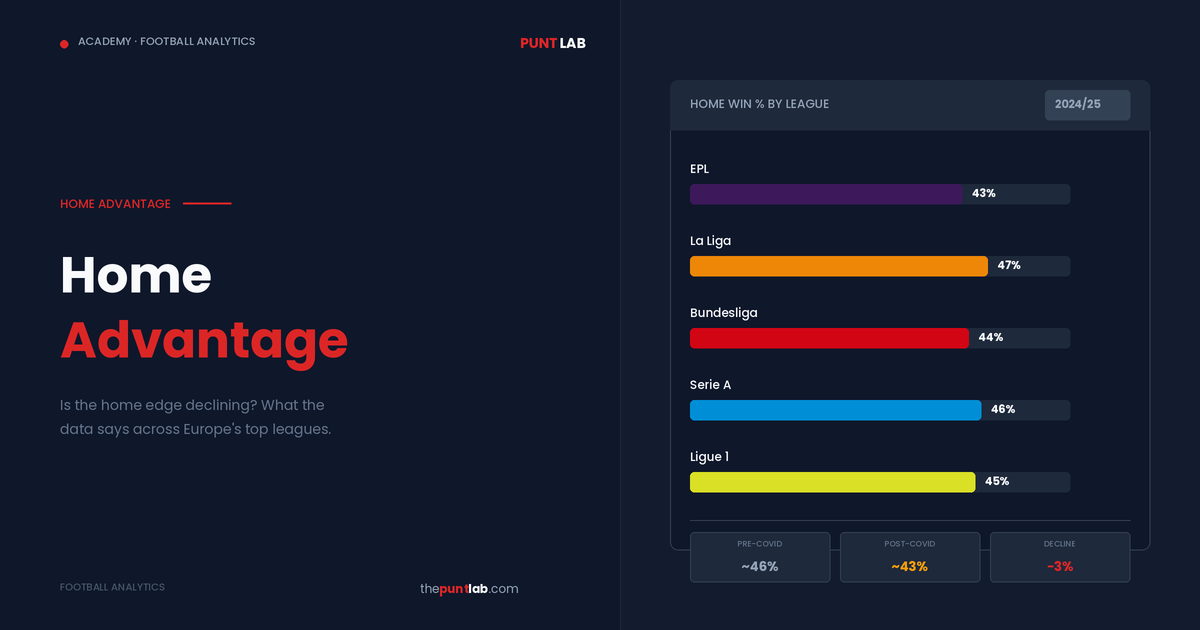 Home advantage is one of the oldest assumptions in sport. The home team wins more often — everyone knows that. But how much more often? Is it changing? And more importantly for punters: does the market already price it in, or is there an edge hiding in the data? The answer is more nuanced than … Read more