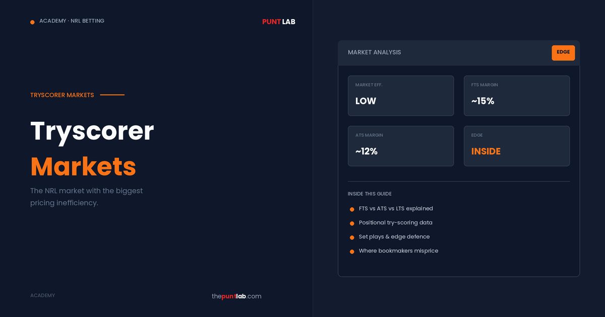 Tryscorer markets are the least efficient major market in NRL betting. While H2H and line markets attract sharp money and tight pricing, tryscorer odds are set with wider margins, less sophisticated modelling, and slower adjustment to information. For punters willing to do the work, this is where the edge lives. The trade-off is clear: higher … Read more