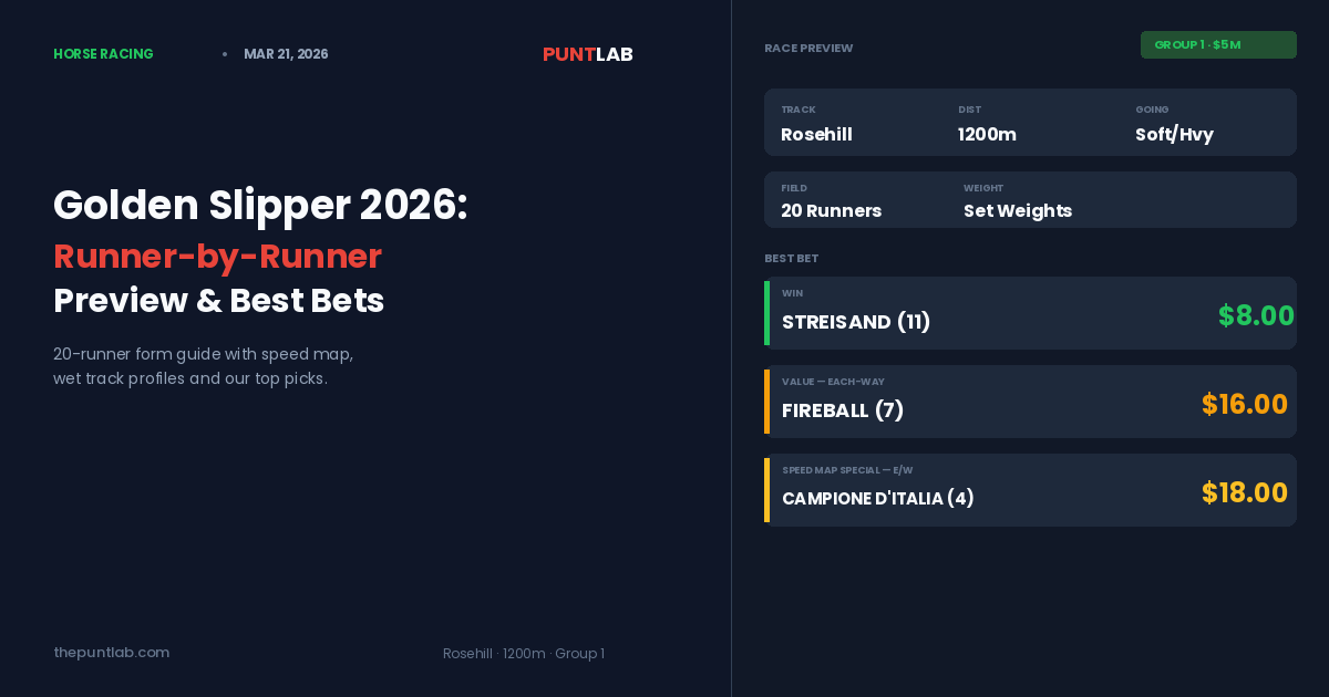 The 2026 Golden Slipper is wide open — and the weather gods are about to have their say. Rosehill Gardens hosts Australia’s richest two-year-old race on Saturday, and with rain forecast through Friday and into Saturday morning, what was already a fascinating betting puzzle just got a whole lot more complicated.