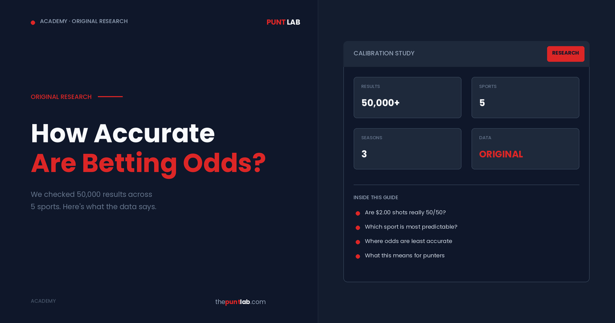This is the calibration question — the most fundamental test of whether betting odds reflect reality. We analysed over 50,000 results across five sports and three seasons to find out how accurate the Australian betting market really is, where it’s most precise, and where the gaps exist.